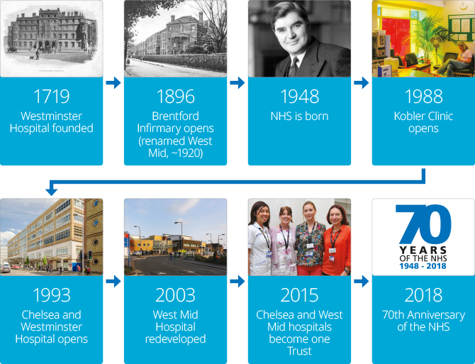 You can visit the timeline on the Lower Ground Floor at Chelsea and Westminster Hospital.