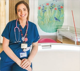 ![]() Midwife Jessica Fletcher in the state-of-the-art Birth Centre at Chelsea and Westminster |