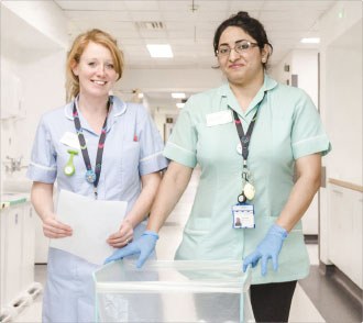 ![]() Staff Nurse Nicola Hearmon with Healthcare Assistant Naima Yaqoob in the Acute Assessment Unit at Chelsea and Westminster |