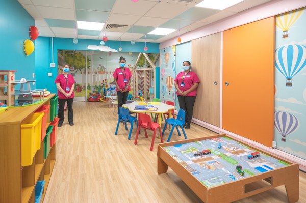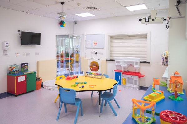 We have Play Rooms on the Children's Wards that are open in the mornings and afternoons offering a range of play and art and craft activities—bedside toy boxes are available in the evenings. At the weekends the Play Rooms are open at the discretion of the nursing staff.
