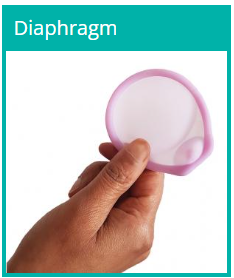 Diaphragms and cervical caps are cups made of silicone. It is put at the top of the vagina to cover the cervix (neck of the womb). It's used with spermicide (a cream that kills sperm), and necessary to check it's in the right place before sex.