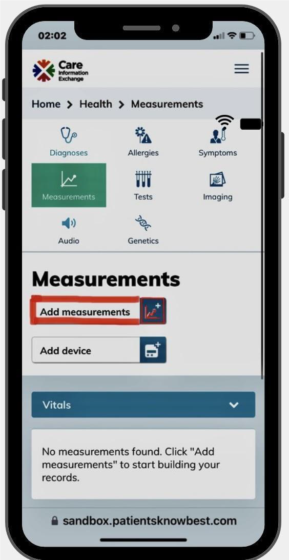 Select the chosen measurement from the scroll-down menu, input it, and save the data.