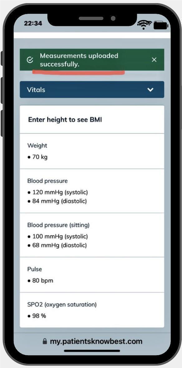 Your recorded symptoms and measurements are now available for the remote team to review.