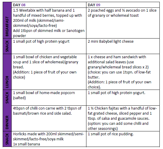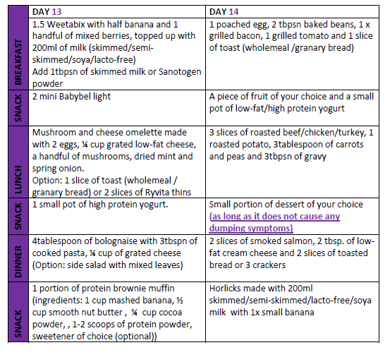 Fourteen day post operation meal ideas https://www.chelwest.nhs.uk/your-visit/patient-leaflets/bariatric-dietetics/fourteen-day-post-operation-meal-ideas https://www.chelwest.nhs.uk/++resource++plone-logo.svg Fourteen day post operation meal ideas Meal Plan Contributors Liz Alden