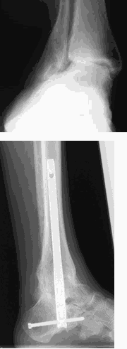 Given these findings, a major fusion of the foot and ankle is often required. The model shows a nail used to fuse the ankle and foot into a neutral position. Whilst this obliterates movement patients can compensate to a degree in the smaller joints of the foot assuming these are not too arthritic.