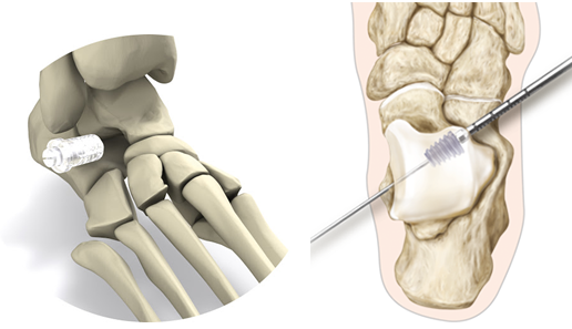 When the foot rolls in this gap reduces in size and expands when the foot rolls out. By placing the right size implant in the sinus tarsi, we can limit the amount of rolling in (pronation) of the foot.
